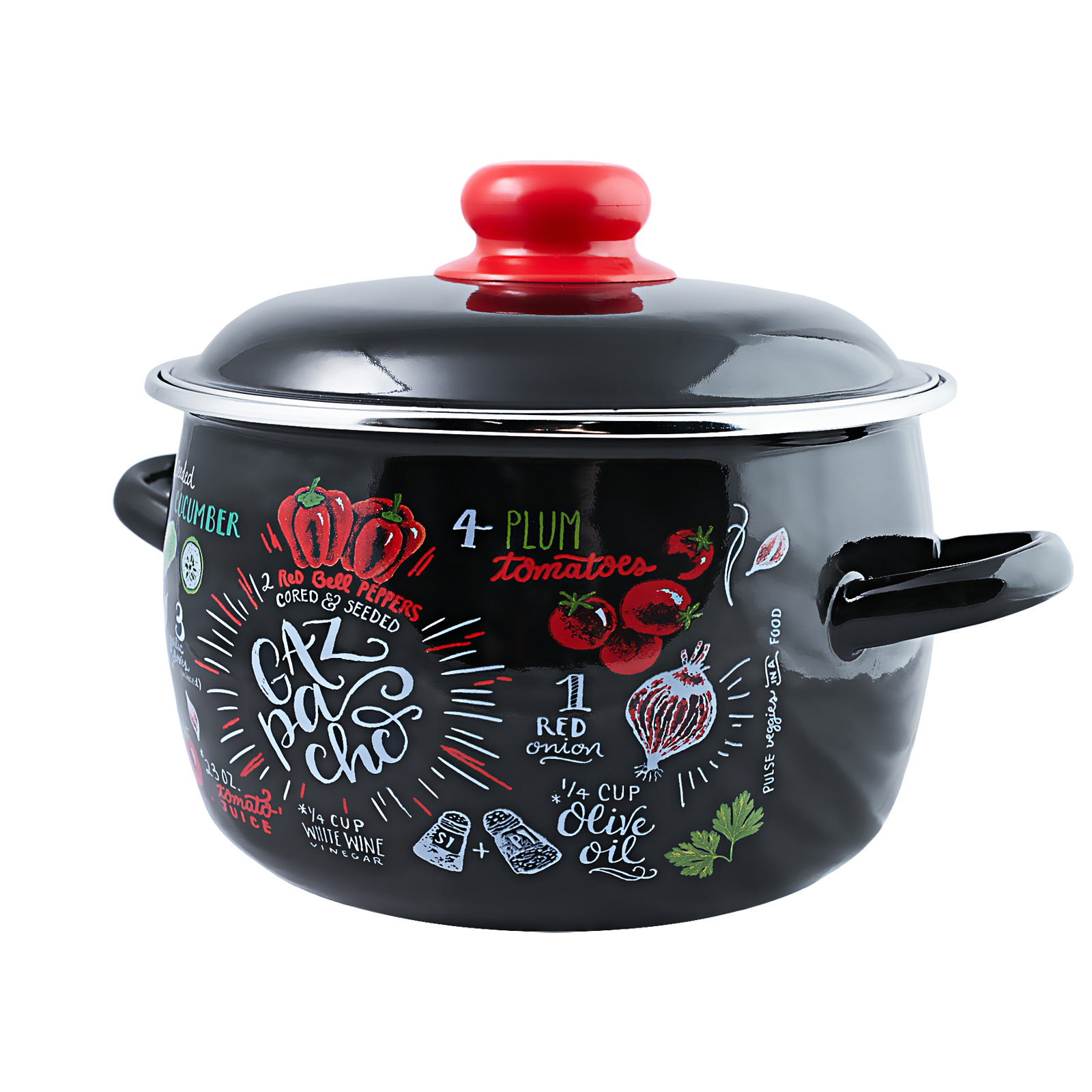 Сферическая эмалированная кастрюля предназначена для бытового использования.