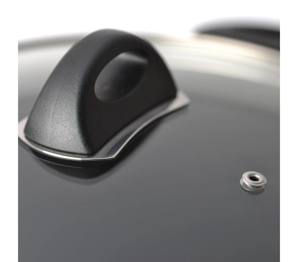 Прочная и простая в использовании посуда с быстрым и равномерным распределением тепла. Многослойное и армированное, свободное от ПФОК антипригарное покрытие для удобного извлечения пищи и легкой чистки. Не содержит ни свинца, ни кадмия. Крышка обеспечивает эффективное закрытие: тепло сохраняется внутри кастрюли, что приводит к более быстрому разогреву, три вентиляционных отверстия предотвращают выплескивание. Благодаря стеклянной крышке можно наблюдать за ингредиентами в кастрюле. Не нужно поднимать крышку, растрачивая энергию и вкусовые качества. Не нагревающиеся ручки для дополнительного комфорта и безопасности.
