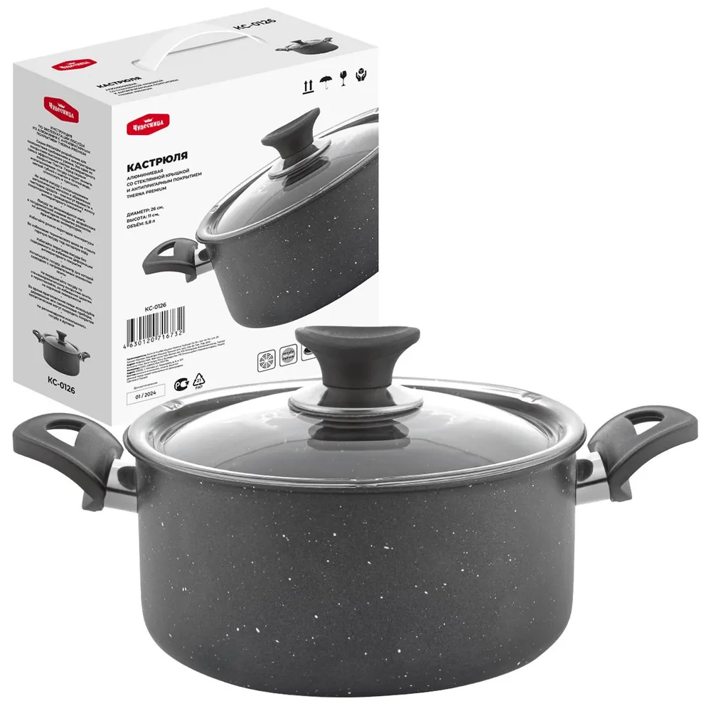 Ненагревающиеся ручки, Крышка в комплекте, Жаропрочная