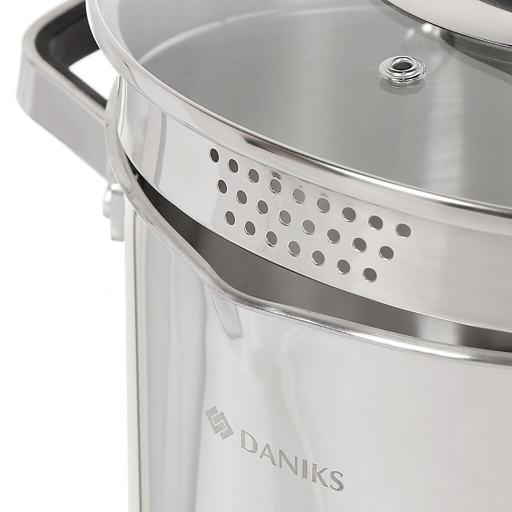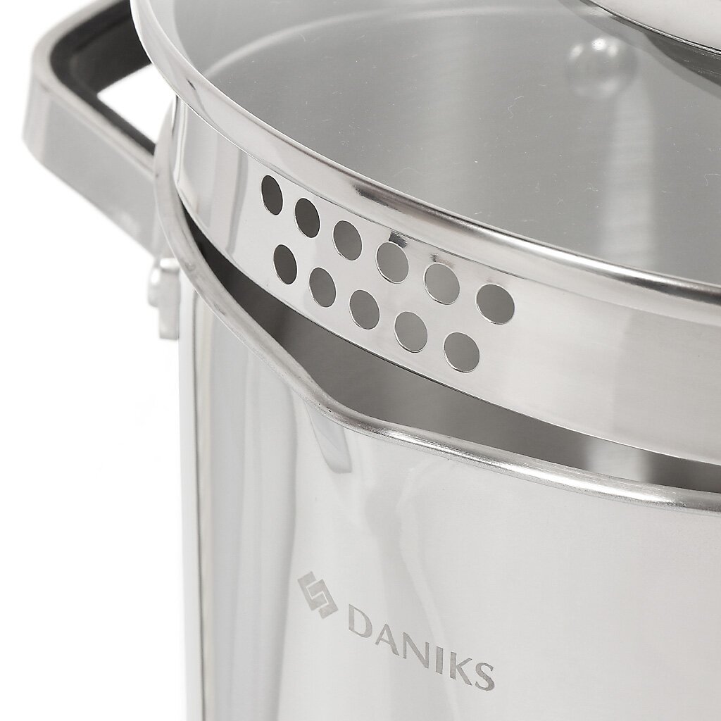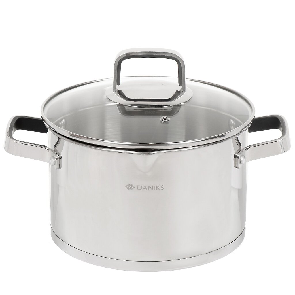 Кастрюля с крышкой Daniks имеет металлические ручки, которые удобны, прочны и не нагреваются при использовании посуды.