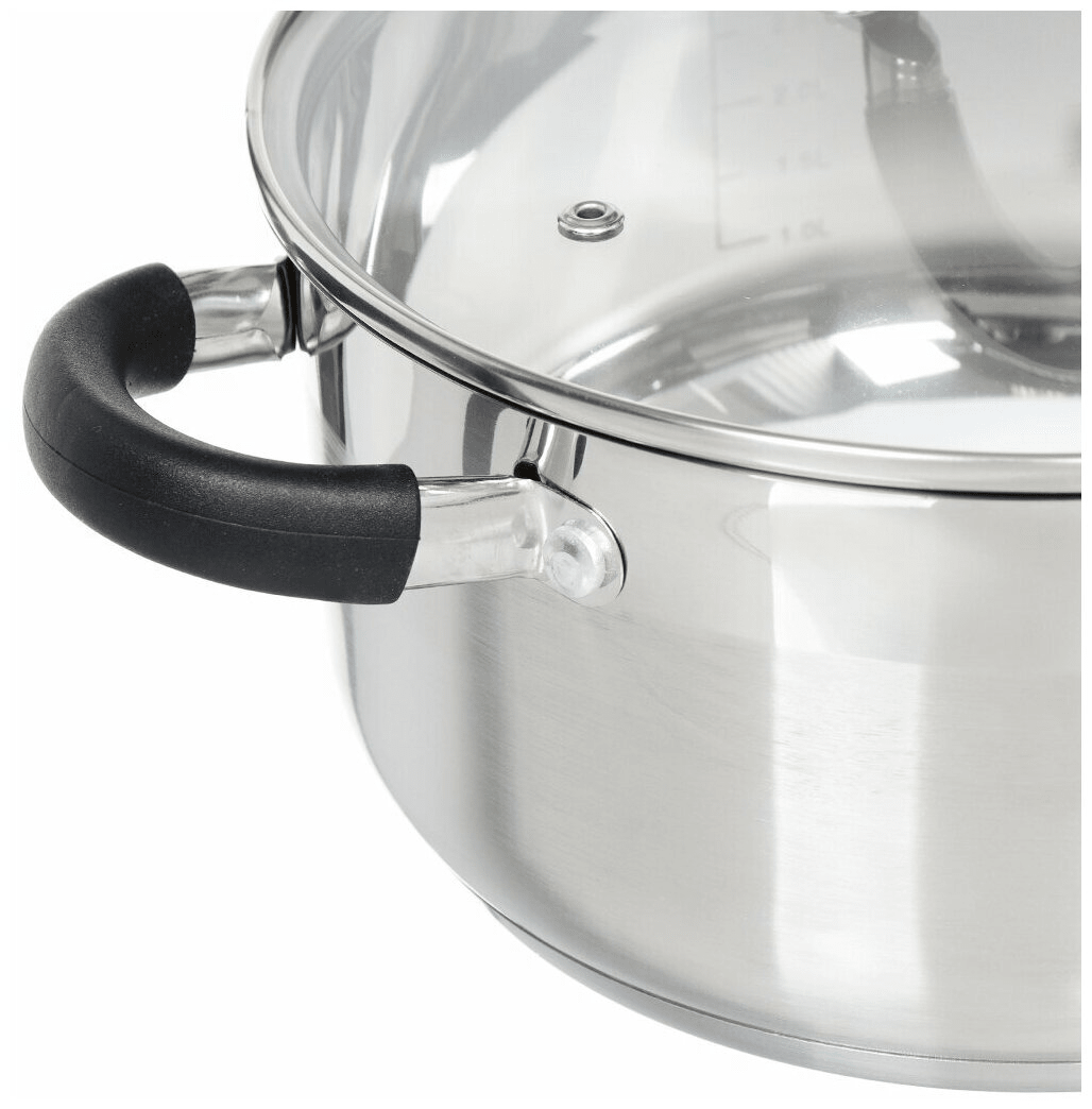 Кастрюля изготовлена из высококачественной нержавеющей стали.