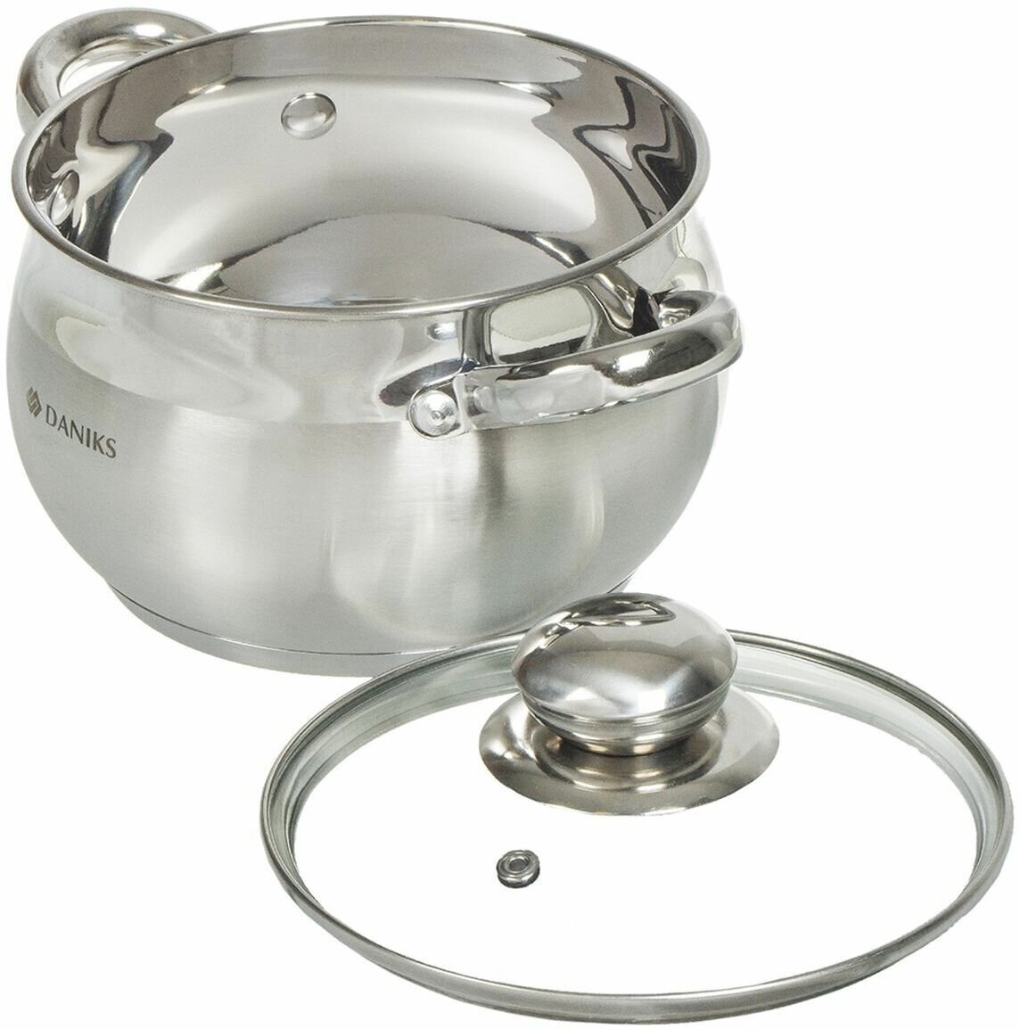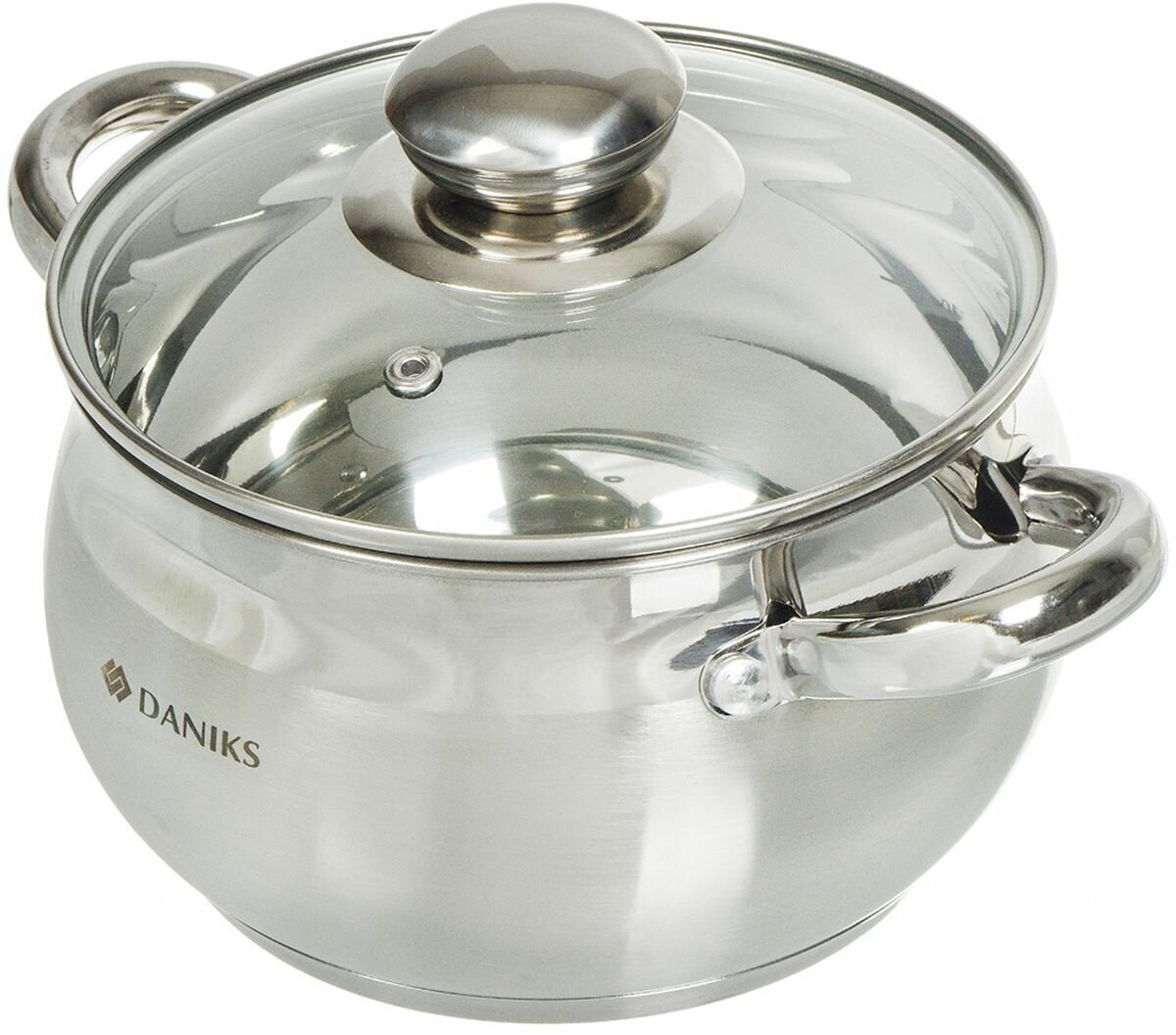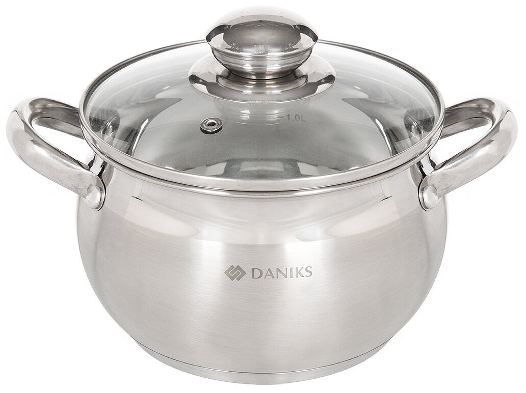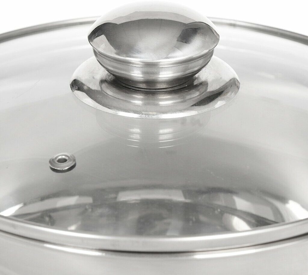 Крышка стеклянная, с клапаном выпуска пара. Посуда совместима с разными видами варочных поверхностей, в том числе с индукционной.