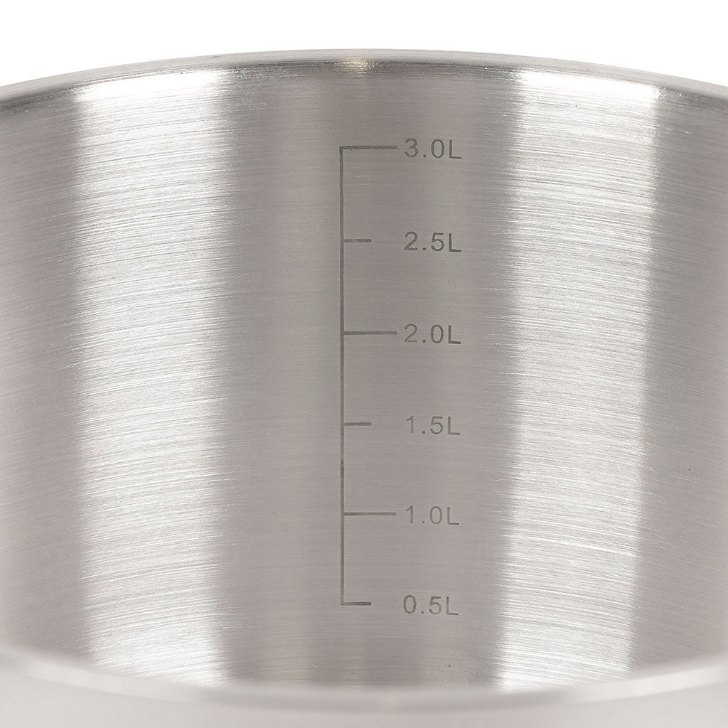 Индукционное трехслойное дно прогревается равномерно, что позволяет избежать резких температурных перепадов — пища не пригорает.