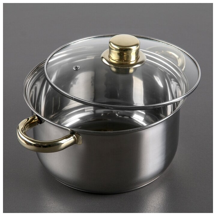 многослойное дно; материал крышки: стекло, сталь; материал ручек: сталь