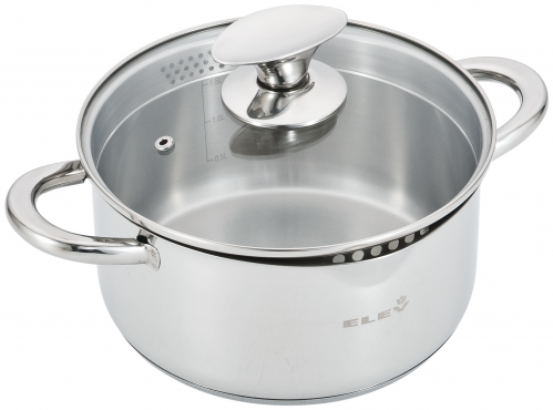 Кастрюля ELEY изготовлена из высококачественной нержавеющей стали 304 (18/10) толщиной 0,6 мм с хромированной полировкой.