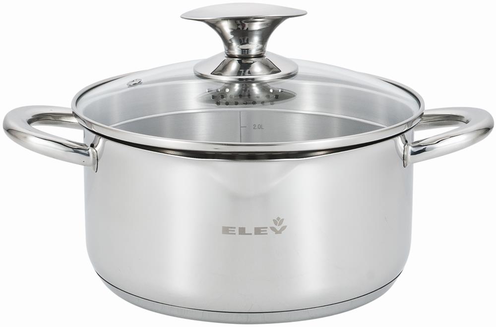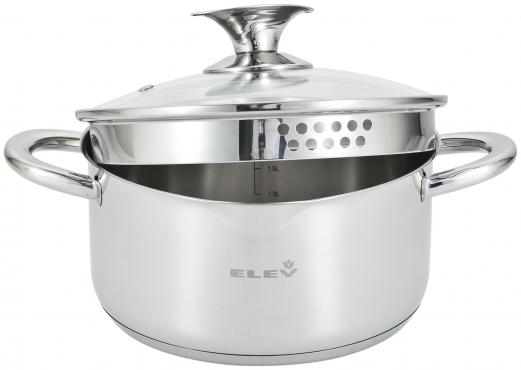 Кастрюля ELEY изготовлена из высококачественной нержавеющей стали 304 (18/10) толщиной 0,6 мм с хромированной полировкой.