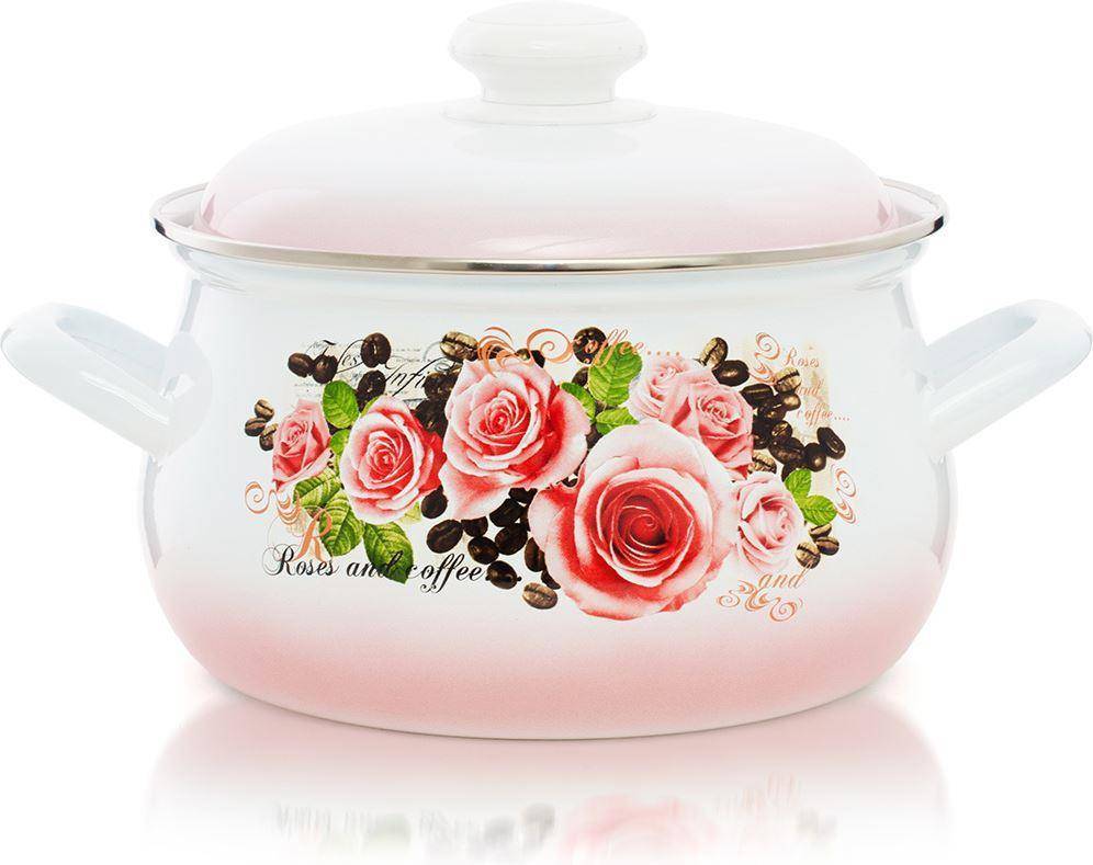 Кастрюля Эстет "Розы и кофе" изготовлена из высококачественного стального проката и покрыта стеклокерамической эмалью. Внутри и снаружи - трехслойное глянцевое эмалированное покрытие. Эмалевое покрытие, являясь стекольной массой, не вызывает аллергию и надежно защищает пищу от контакта с металлом. Кроме того, такое покрытие долговечно, оно устойчиво к механическому воздействию, не царапается, а стальная основа практически не подвержена механической деформации, благодаря чему срок эксплуатации увеличивается. Крышка с эмалированным покрытием оснащена удобной ручкой, куполообразная форма крышки минимизирует выкипание в процесе приготовления пищи. Она плотно прилегает к краю, сохраняя аромат блюд. Подходит для всех типов плит, включая индукционные. Можно мыть в посудомоечной машине.
