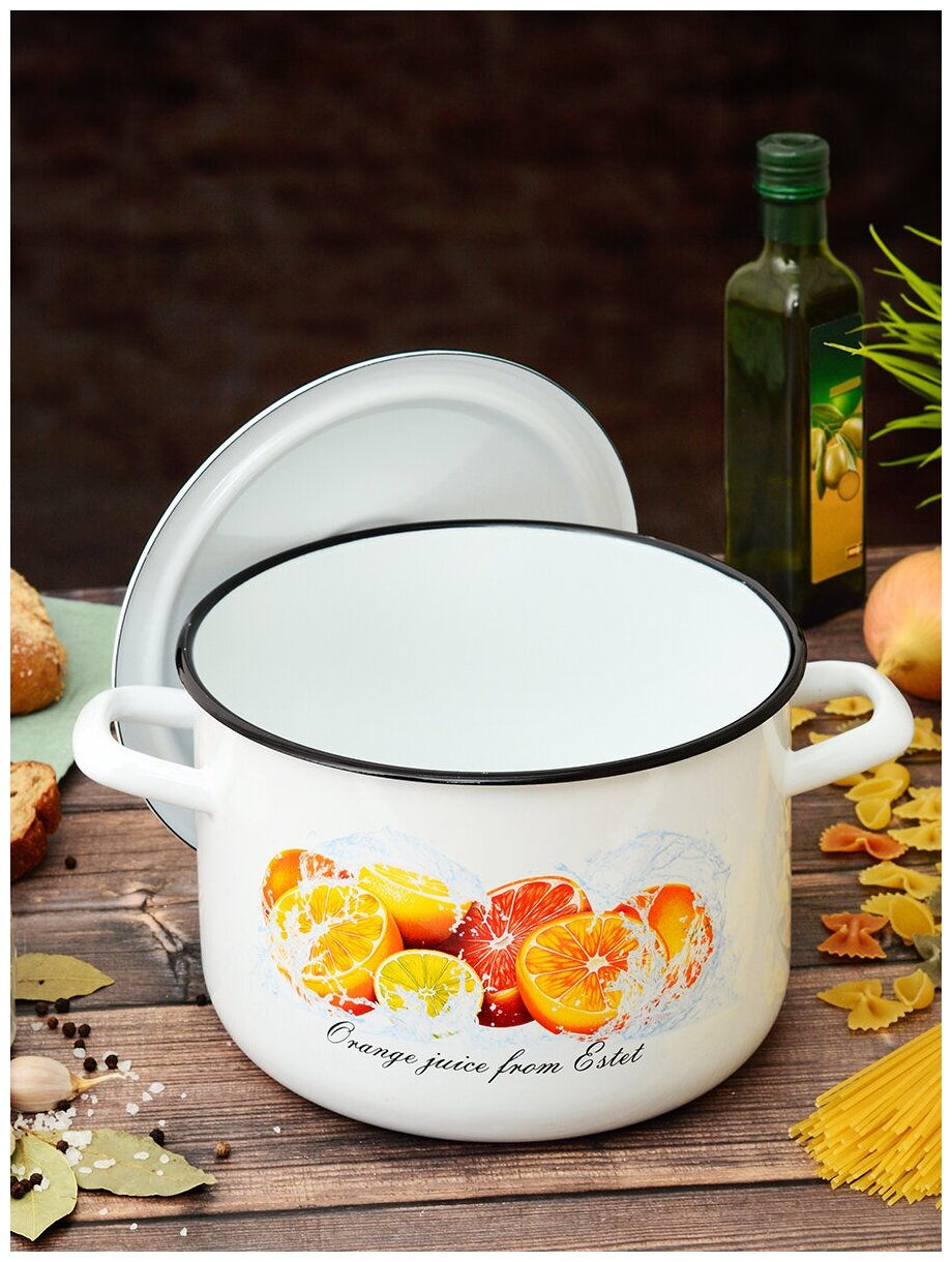 Кастрюля Эстет изготовлена из высококачественного стального проката и покрыта стеклокерамической эмалью. Внутри и снаружи трехслойное глянцевое эмалированное покрытие. Эмалевое покрытие, являясь стекольной массой, не вызывает аллергию и надежно защищает пищу от контакта с металлом. Кроме того, такое покрытие долговечно, оно устойчиво к механическому воздействию, не царапается, а стальная основа практически не подвержена механической деформации, благодаря чему срок эксплуатации увеличивается. Крышка с эмалированным покрытием оснащена удобной ручкой, . Она плотно прилегает к краю, сохраняя аромат блюд. Подходит для всех типов плит, включая индукционные. Можно мыть в посудомоечной машине.