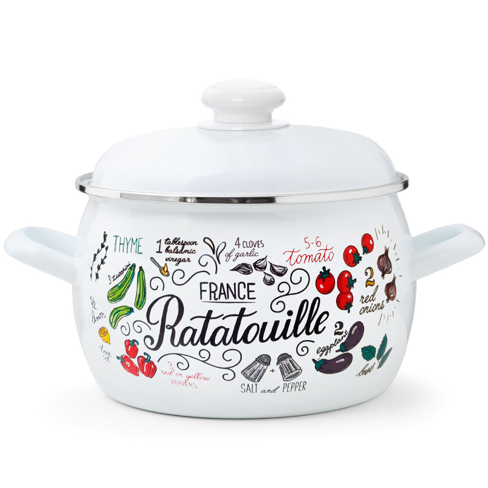 Кастрюля Эстет "Рататуй" изготовлена из высококачественного стального проката и покрыта стеклокерамической эмалью. Внутри и снаружи - трехслойное глянцевое эмалированное покрытие. Эмалевое покрытие, являясь стекольной массой, не вызывает аллергию и надежно защищает пищу от контакта с металлом. Кроме того, такое покрытие долговечно, оно устойчиво к механическому воздействию, не царапается, а стальная основа практически не подвержена механической деформации, благодаря чему срок эксплуатации увеличивается. Крышка с эмалированным покрытием оснащена удобной ручкой, куполообразная форма крышки минимизирует выкипание в процесе приготовления пищи. Она плотно прилегает к краю, сохраняя аромат блюд. Подходит для всех типов плит, включая индукционные. Можно мыть в посудомоечной машине.