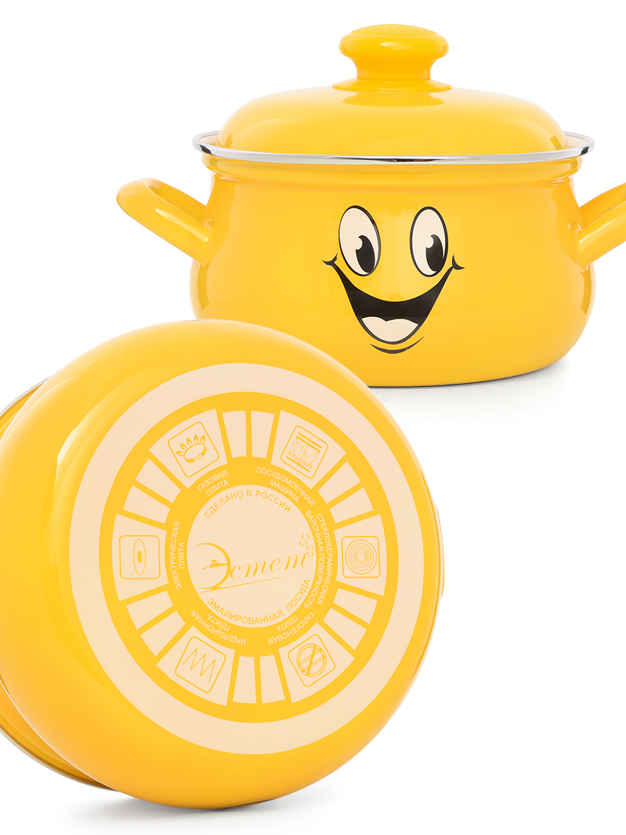 Кастрюля Эстет "Улыбка" изготовлена из высококачественного стального проката и покрыта стеклокерамической эмалью. Внутри и снаружи - трехслойное глянцевое эмалированное покрытие. Эмалевое покрытие, являясь стекольной массой, не вызывает аллергию и надежно защищает пищу от контакта с металлом. Кроме того, такое покрытие долговечно, оно устойчиво к механическому воздействию, не царапается, а стальная основа практически не подвержена механической деформации, благодаря чему срок эксплуатации увеличивается. Крышка с эмалированным покрытием оснащена удобной ручкой, куполообразная форма крышки минимизирует выкипание в процесе приготовления пищи. Она плотно прилегает к краю, сохраняя аромат блюд. Подходит для всех типов плит, включая индукционные. Можно мыть в посудомоечной машине.