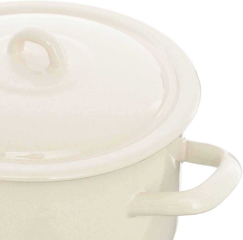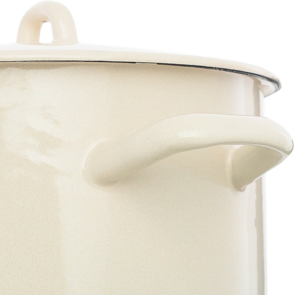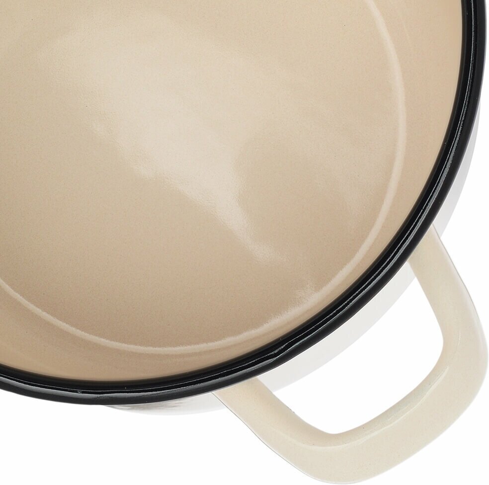 Крышка с эмалированным покрытием оснащена удобной ручкой. Она плотно прилегает к краю, сохраняя аромат блюд.
