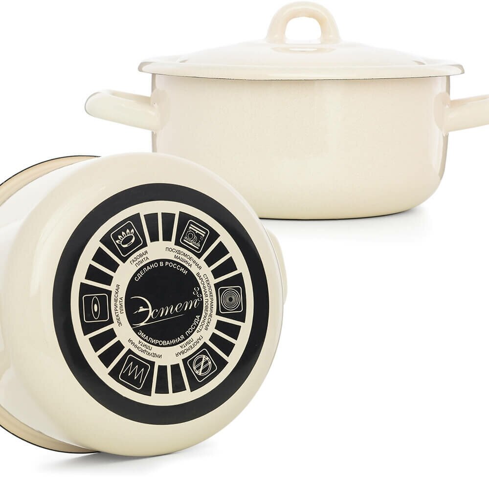 Кастрюля Эстет изготовлена из высококачественного стального проката и покрыта стеклокерамической эмалью.