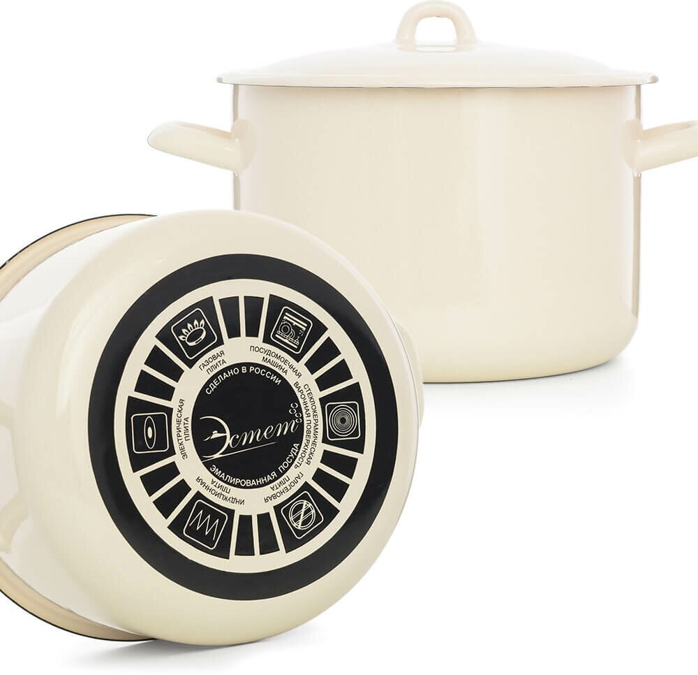 Кастрюля Эстет изготовлена из высококачественного стального проката и покрыта стеклокерамической эмалью. Внутри и снаружи - трехслойное глянцевое эмалированное покрытие. Эмалевое покрытие, являясь стекольной массой, не вызывает аллергию и надежно защищает пищу от контакта с металлом. Кроме того, такое покрытие долговечно, оно устойчиво к механическому воздействию, не царапается и не сходит, а стальная основа практически не подвержена механической деформации, благодаря чему срок эксплуатации увеличивается. Крышка с эмалированным покрытием оснащена удобной ручкой, . Она плотно прилегает к краю, сохраняя аромат блюд. Подходит для всех типов плит, включая индукционные. Можно мыть в посудомоечной машине.