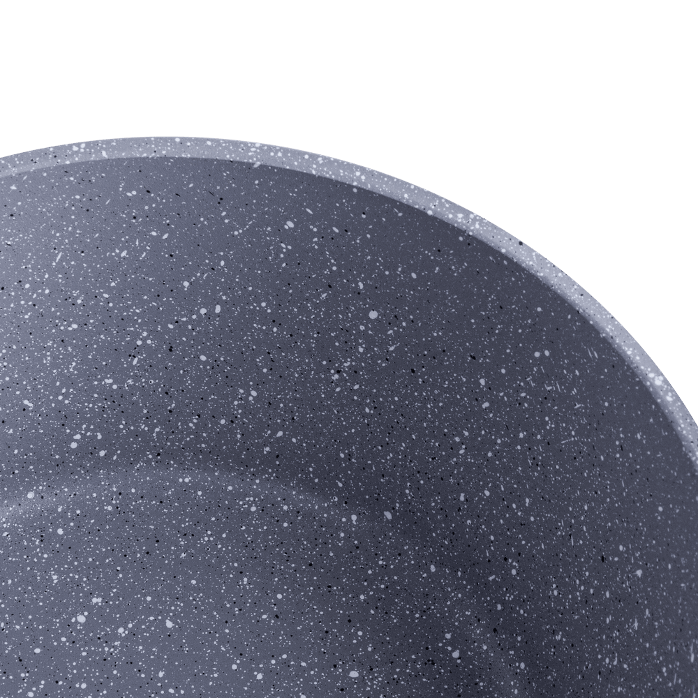 - Трехслойное антипригарное покрытие. Устойчивое к царапинам, полностью безопасное антипригарное покрытие, позволяет готовить блюда без использования большого количества масла. Не содержит свинец и кадмий, без PFOA.