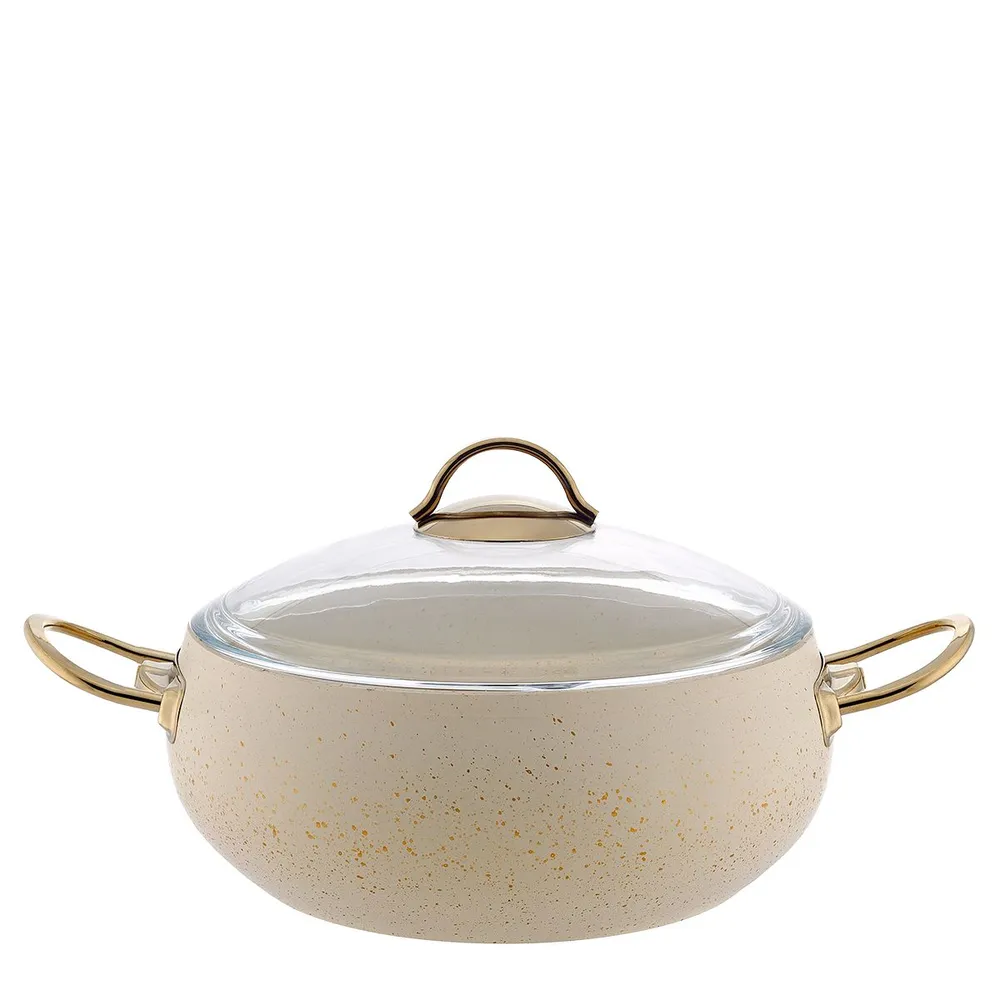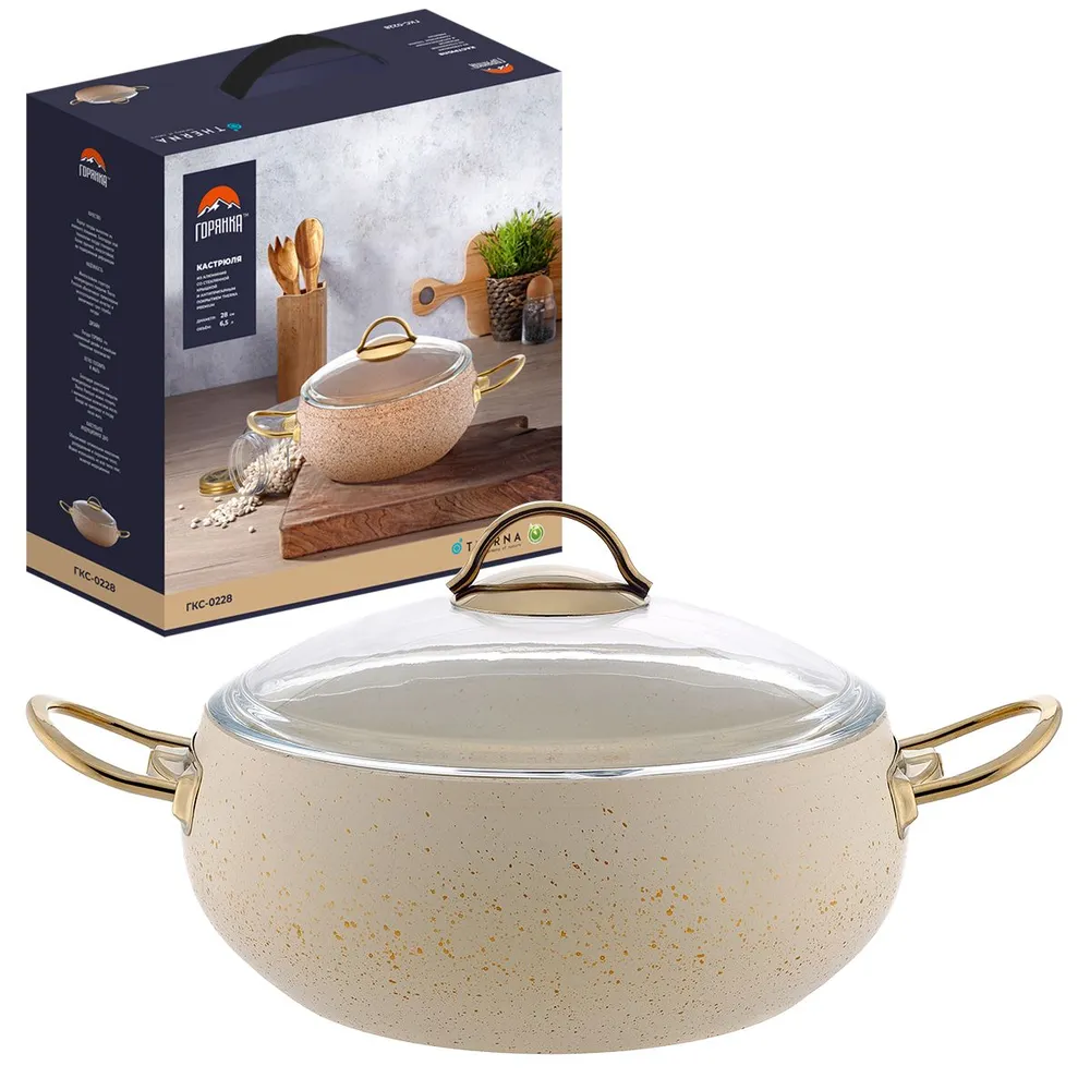 Кастрюля алюминиевая 6,5 л в цвете кремовом - это идеальный выбор для тех, кто ценит качество и функциональность в кухонных принадлежностях. Этот кухонный аксессуар имеет диаметр 28 сантиметров, высоту 12 сантиметров и объем 6,5 литра, что делает его идеальным для приготовления различных блюд как для семьи, так и для гостей.