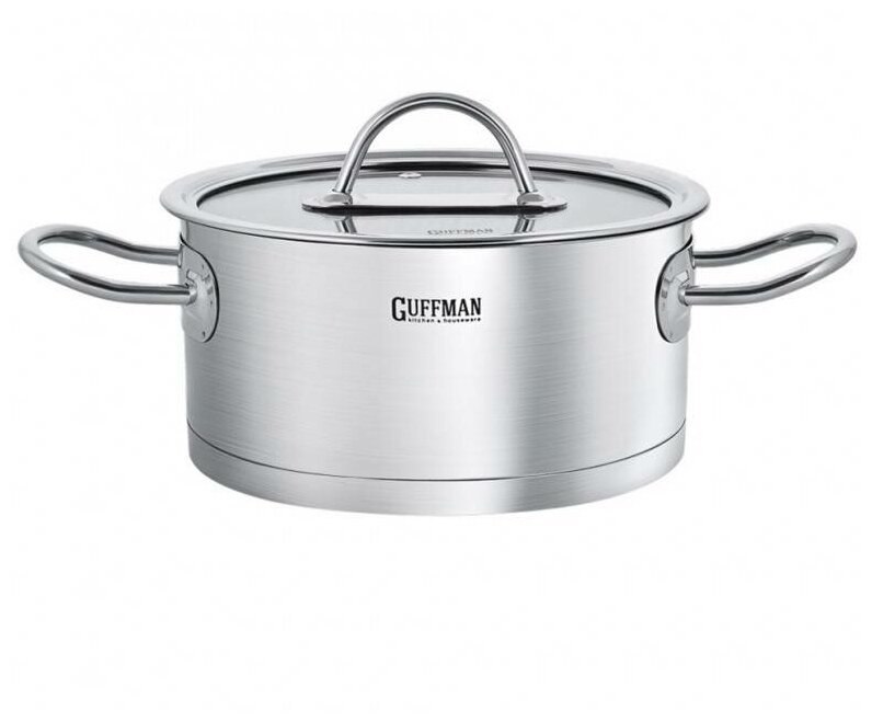 Изделие изготовлено из высококачественной нержавеющей стали, устойчивой к коррозии, деформации и износу. Металлические ручки не нагреваются, что обеспечивает безопасность в процессе готовки. Стеклянная крышка оснащена отверстием для отвода пара, которое защищает от протечек при кипении воды. Модель подходит для всех видов плит. Ее можно мыть в посудомоечной машине.