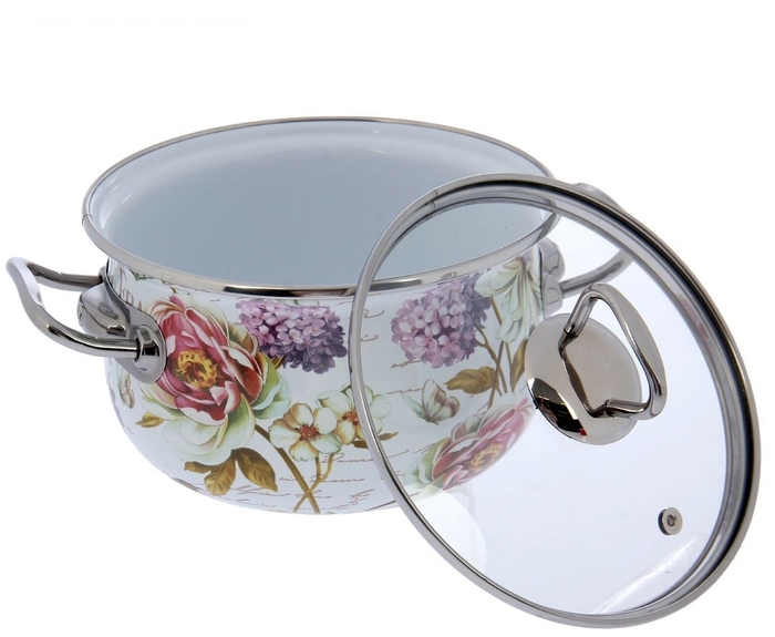Кастрюля Interos выполнена с применением передовых технологий производства из высококлассных материалов. Посуда полностью соответствует всем мировым стандартам в области безопасности и экологии. Богатый внешний вид посуде придает двухслойное эмалевое покрытие с объемным рисунком. Дополнительное удобство использования обеспечивают стеклянные крышки с пароотводом и не нагревающиеся ручки.