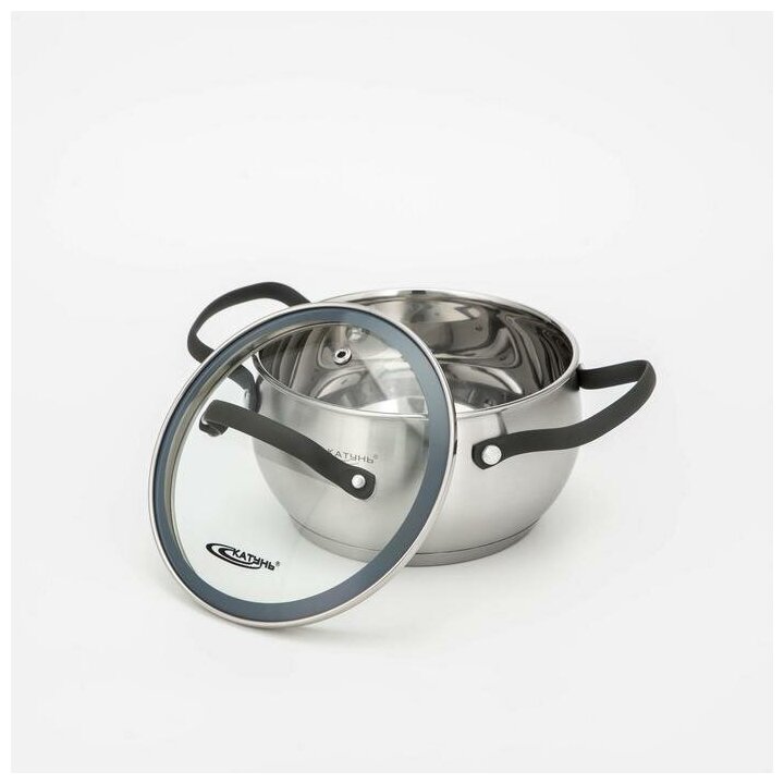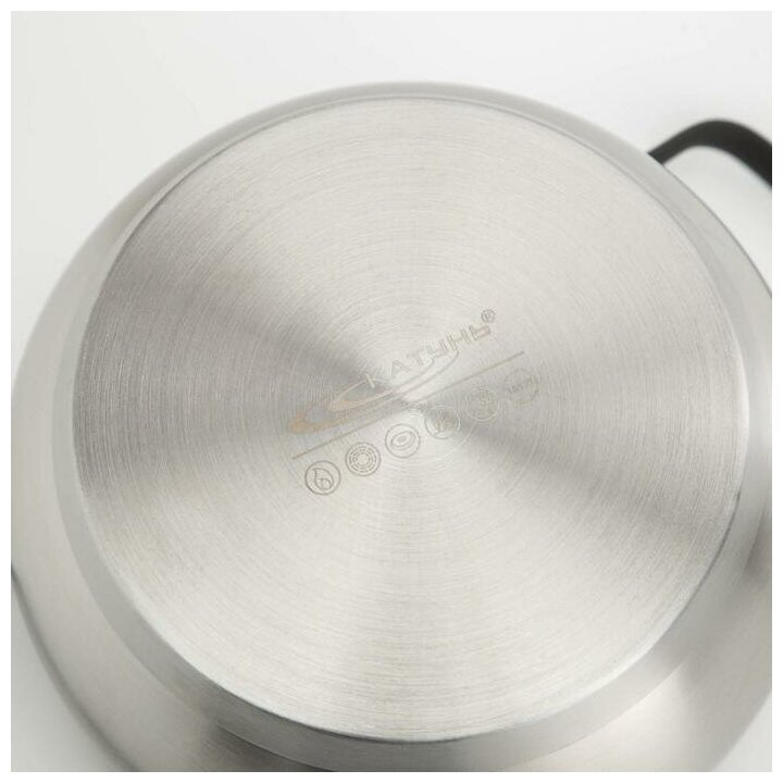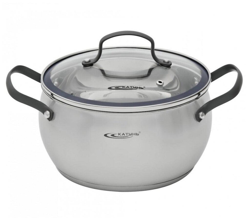 Кастрюля катунь Агата КТ 19 D 16 с крышкой 1,6л изготовлена из нержавеющей стали с теплораспределительным дном.