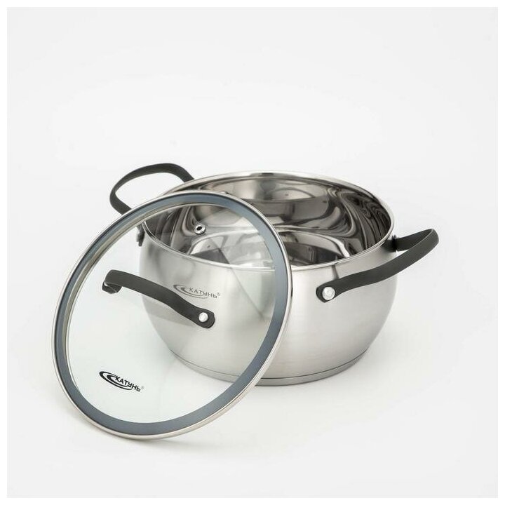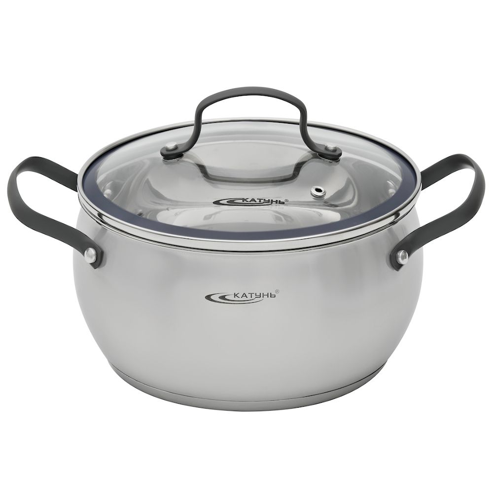 Кастрюля КАТУНЬ Агата КТ 19 D 20 с крышкой 3,2л изготовлена из нержавеющей стали с теплораспределительным дном.