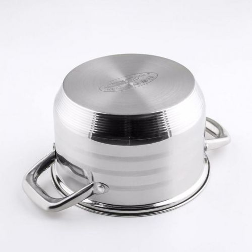 Прочное 5-ти слойное дно равномерно распределяет тепло и прекрасно сохраняет температуру, благодаря чему приготовление пищи происходит быстрее.