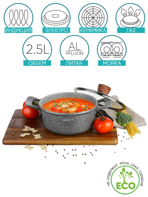 Характеристики Кастрюли Катунь Пирит КТ-АЛ01-К20 2,5л 20х10,5см