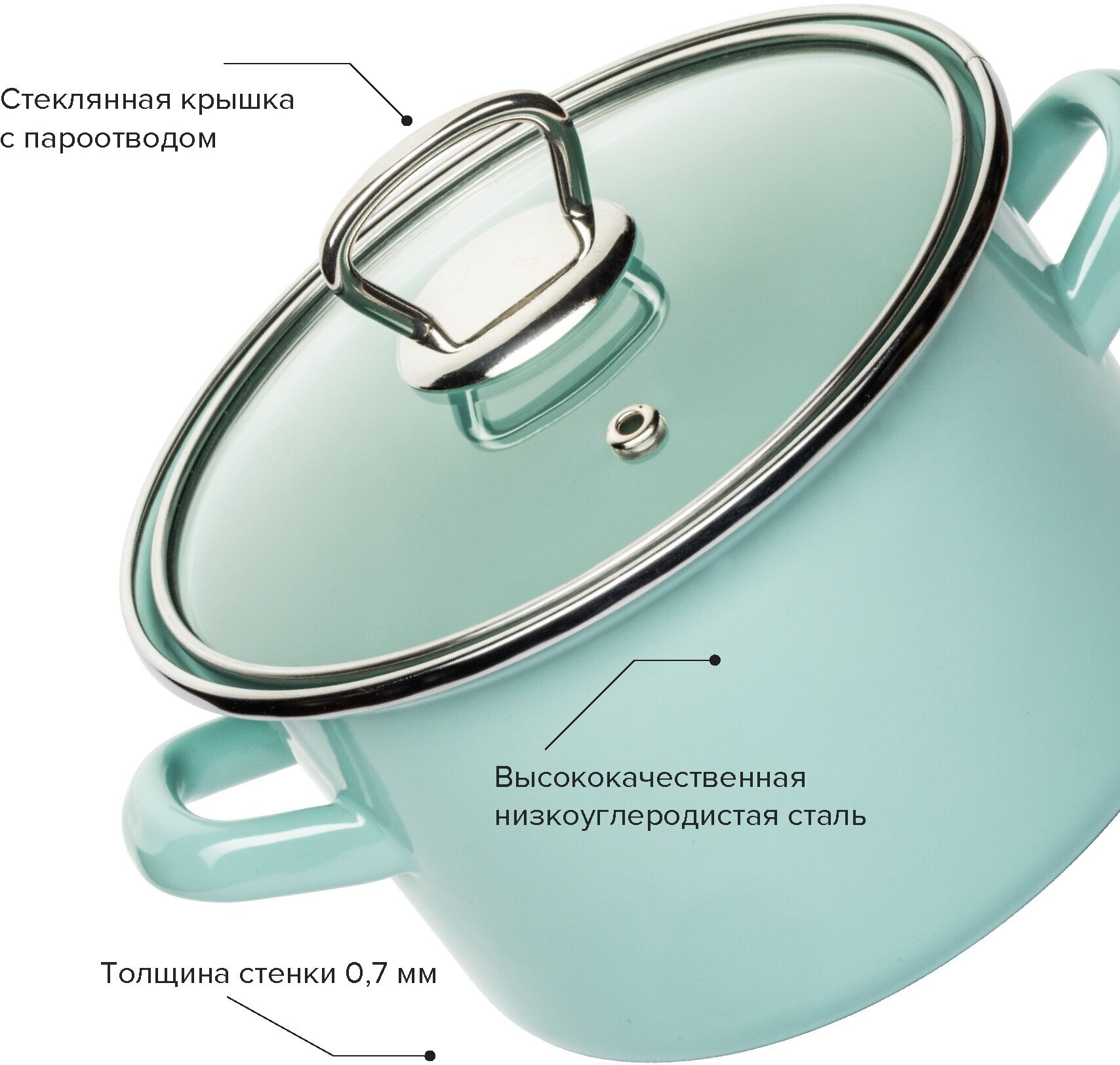 Кастрюля предназначена для приготовления пищи на всех различных видах плит, включая индукционную. Объем посуды составляет 2 л. Полностью изготовлена из прочной низкоуглеродистой стали, с двухслойным эмалевым покрытием. Кастрюля устойчива к перепадам температуры, не подвержена деформации и механическим повреждениям.