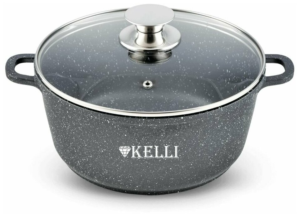 Кастрюля объемом 8 литра. высота 12 см. Изготовлена из высококачественного алюминия с внутренним антипригарным мраморным покрытием. Высококачественный алюминий отличается долговечностью и способностью быстро и равномерно нагреваться и аккумулировать тепло, что приводит к экономии энергии и способствует быстрому приготовлению пищи. Внешнее каменное покрытие. Силиконовые накладки на ручки. Жаропрочная стеклянная крышка с паровыпуском. Подходит для всех типов плит, включая индукционную.