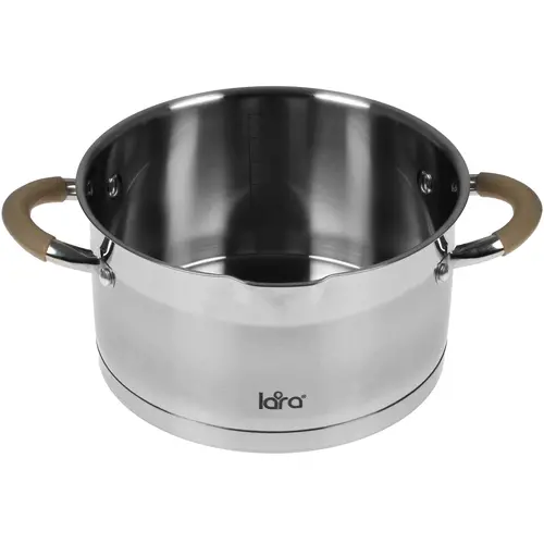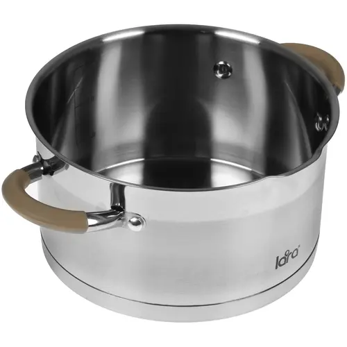 Кастрюля на 3.1 литра имеет естественную серебристую расцветку с бежевыми элементами. Посуда из нержавеющей стали дополнена комбинированной полировкой поверхности и капсулированным индукционным дном. Кастрюля поставляется с плотной крышкой из термостойкого стекла, дополненной ненагревающейся округлой ручкой.