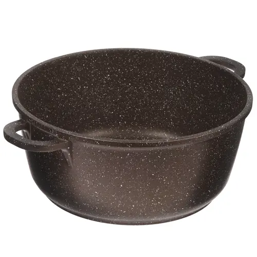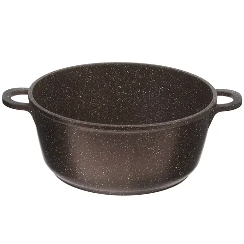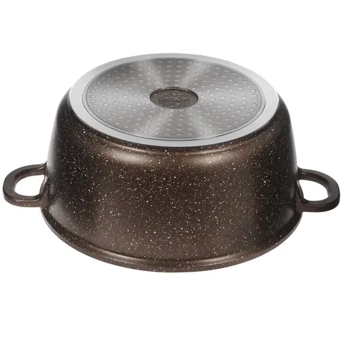 Кастрюля изготовлена из долговечного литого алюминия с износостойким мраморным покрытием коричневого цвета, обеспечивающим комфорт в процессе приготовления без пригорания продуктов.