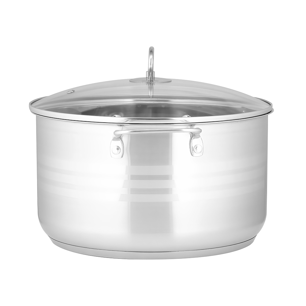 Стеклянная крышка окаймлена ободком G-формы: за счет этого крышка надежно фиксируется на кастрюле с минимальным люфтом.