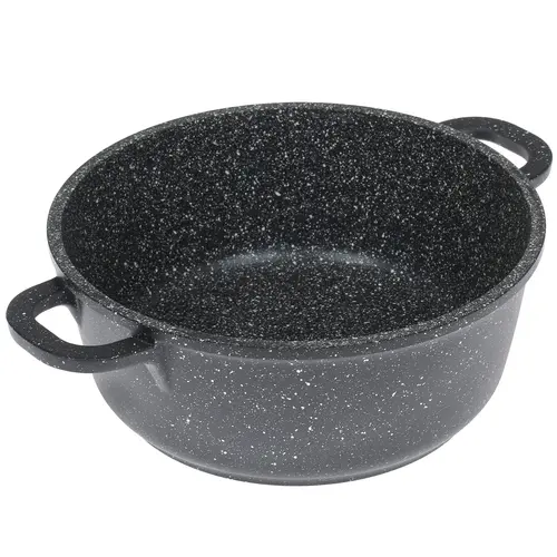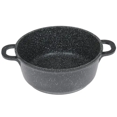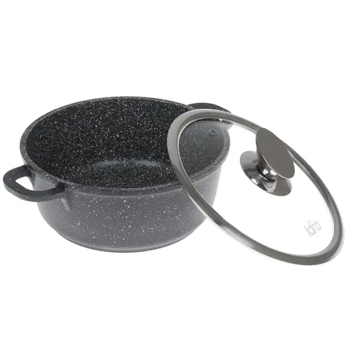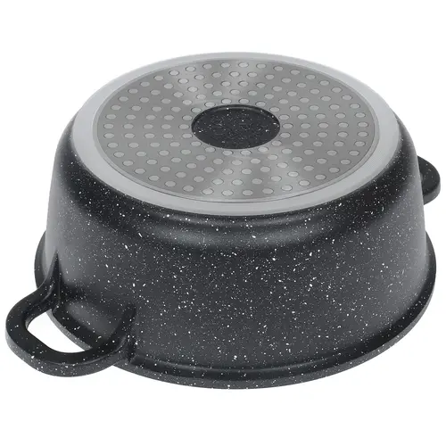 Кастрюля комплектуется крышкой из жаропрочного стекла с отверстием для выпуска излишков пара и удобной ручкой. Благодаря индукционному дну данная модель подходит для всех видов плит. Изготовленная из алюминия кухонная утварь обладает объемом 2.3 л и диаметром 200 мм.
