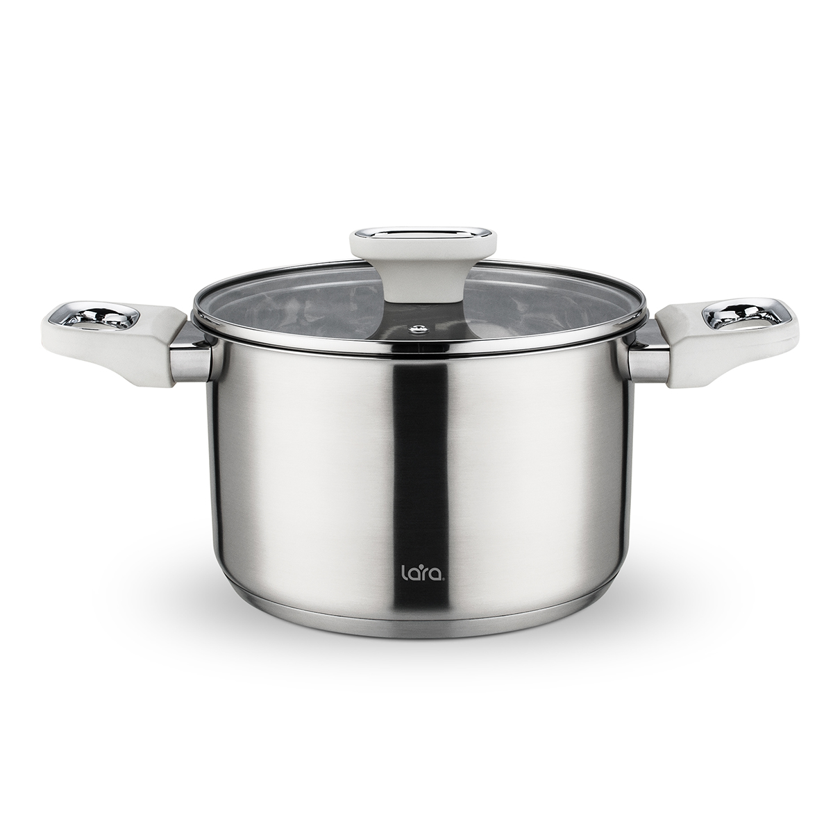 Посуда LARA создана чтобы воплотить любые кулинарные шедевры в реальность! Серия «ФЛОРА» отлично подходит для приготовления первых и вторых блюд. Выполнена из премиальной нержавеющей стали, не окисляется, не впитывает вкусы и запахи продуктов, за посудой легко ухаживать, её можно мыть в посудомоечной машине. Прочные ручки с покрытием Soft Touch, гарантируют безопасное использование посуды. Стильный и эргономичный дизайн для комфортного ежедневного использования. Крышка выполнена из устойчивого к высоким температурам стекла со встроенным паровыпуском, дополнена удобной ручкой. Толстое 5-ступенчатое капсулированное дно равномерно распределяет нагрев по всей посуде.