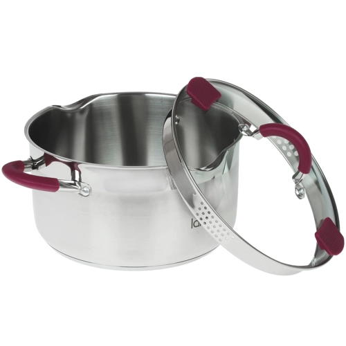Кастрюля дополнена специальными углублениями на корпусе, благодаря которым вы сможете быстро слить оставшуюся жидкость и не обжечь пальцы.