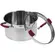 Посуда дополнена нескользящими ручками с силиконовыми накладками, а также съемной крышкой из термостойкого стекла с ненагревающейся силиконовой рукояткой.