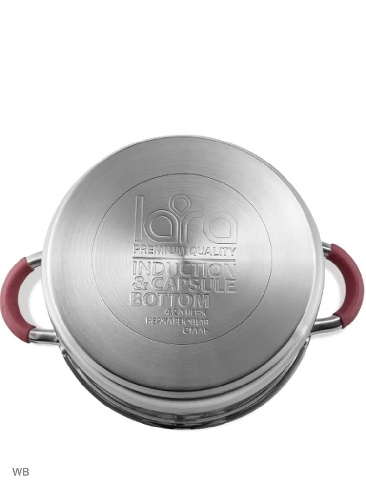 Для крышки использовали термостойкое стекло с паровыпуском и стальным ободом G-формы, который плотно прилегает к стенкам кастрюли. Полые ручки на заклепках с ненагревающимися силиконовыми накладками. Толстое индукционное капсулированное дно подходит для всех типов плит.