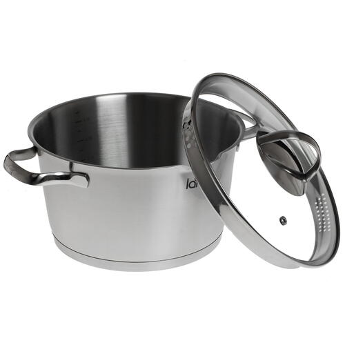 Дополнительно внутренние отметки объема , отверстие в крышке для выпуска пара , встроенный дуршлаг на крышке , подходит для всех типов плит
