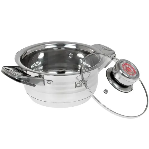Обладая объемом 2.3 л, модель поддерживает диаметр 180 мм, что обеспечивает удобное ее хранение.