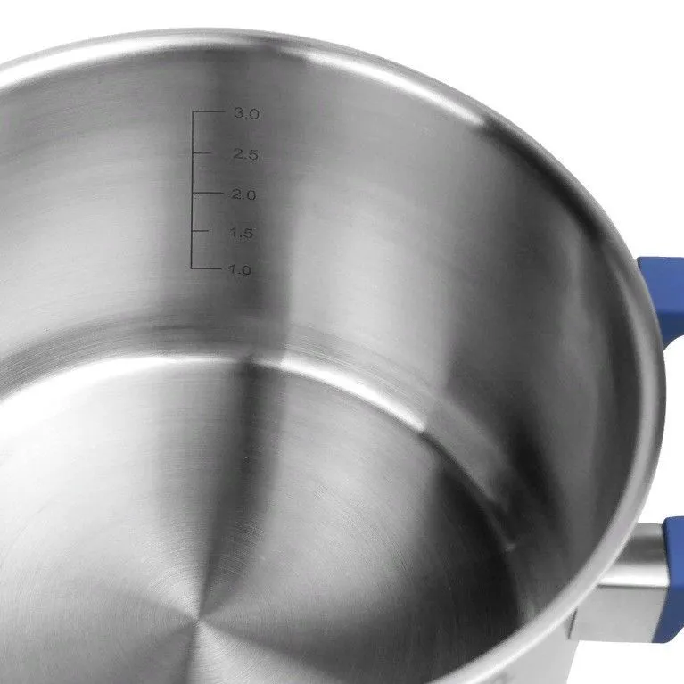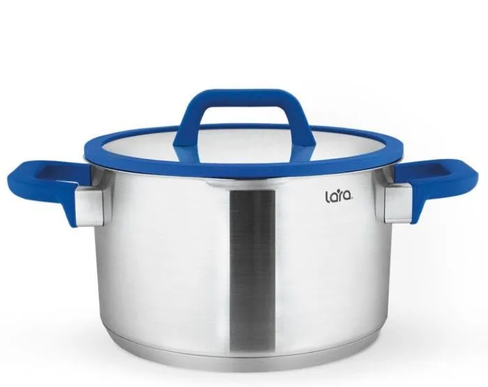 Кастрюли LARA серии «Сапфир» LR02-790 в современном дизайне придутся по душе любой хозяйке. На крышке есть силиконовый ободок синего цвета для повышенной фиксации ручки – это придает изделию оригинальный внешний вид и делает его стильным элементом посуды на кухне. Кастрюля из нержавеющей стали AISI 201 2 литра с носиком для слива жидкости- встроенный дуршлаг. Удобная и практичная кастрюля со стеклянной крышкой,с уникальной конструкцией - встроенный дуршлаг (крышка-дуршлаг)с отверстиями для слива диаметром 3 мм и 6 мм. Внутри кастрюли мерная шкала. Кастрюля оснащена двумя удобными ручками из нержавеющей стали с силиконовым покрытием soft-touch из термостойкого пищевого силикона. Ручки не перегреваются во время приготовления при правильном положении изделия на плите. Крышка, выполненная из термостойкого стекла, позволит вам следить за процессом приготовления пищи Матовая полировка снаружи и матовая полировка внутри совместно с толстым капсулированным термоаккумулирующим дном, способствует быстрому и равномерному нагреву и медленному остыванию. Материал удерживает тепло по всей поверхности изделия, благодаря чему пища равномерно и быстро нагревается. Подходит для индукционной плиты ( индукции ) и для всех видов плит. Кастрюля из нержавейки отлично подходит для варки спагетти и макарон, гарнира, так же подходит для каши, супа. Металлическая кастрюля для варки овощей и яиц, мяса и бульонов, компотов и варенья, круп и гречки, риса различных соусов и подлив, тушения и готовки горячих блюд. Это универсальная посуда как для начинающих хозяек, так и для опытных поваров, и станет незаменимой помощницей дома и на даче в период заготовок. Индукционная кастрюля из нержавеющей стали с крышкой станет надежным помощником на кухне, и позволит избавиться от лишнего инвентаря. Стильный внешний вид и эргономичная конструкция обеспечивают надежный и удобный захват, создаст уют и радостную атмосферу дома на вашей кухне. Соберите неповторимый набор посуды нужного объема.