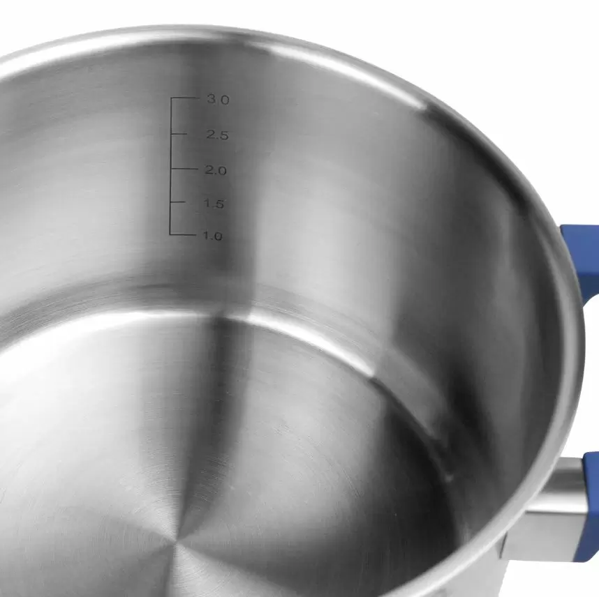 Кастрюли LARA серии «Сапфир» в современном дизайне придутся по душе любой хозяйке. На крышке есть силиконовый ободок синего цвета для повышенной фиксации ручки – это придает изделию оригинальный внешний вид и делает его стильным элементом на кухне.