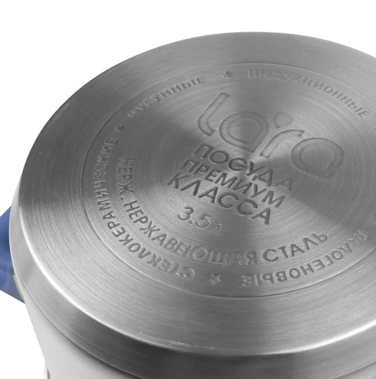 Кастрюли LARA серии «Сапфир» LR02-791 в современном дизайне придутся по душе любой хозяйке. На крышке есть силиконовый ободок синего цвета для повышенной фиксации ручки – это придает изделию оригинальный внешний вид и делает его стильным элементом посуды на кухне. Кастрюля из нержавеющей стали AISI 201 6,2 литра с носиком для слива жидкости- встроенный дуршлаг. Удобная и практичная кастрюля со стеклянной крышкой,с уникальной конструкцией - встроенный дуршлаг (крышка-дуршлаг)с отверстиями для слива диаметром 3 мм и 6 мм. Внутри кастрюли мерная шкала. Кастрюля оснащена двумя удобными ручками из нержавеющей стали с силиконовым покрытием soft-touch из термостойкого пищевого силикона. Ручки не перегреваются во время приготовления при правильном положении изделия на плите. Крышка, выполненная из термостойкого стекла, позволит вам следить за процессом приготовления пищи Матовая полировка снаружи и матовая полировка внутри совместно с толстым капсулированным термоаккумулирующим дном, способствует быстрому и равномерному нагреву и медленному остыванию. Материал удерживает тепло по всей поверхности изделия, благодаря чему пища равномерно и быстро нагревается. Подходит для индукционной плиты ( индукции ) и для всех видов плит. Кастрюля из нержавейки отлично подходит для варки спагетти и макарон, гарнира, так же подходит для каши, супа. Металлическая кастрюля для варки овощей и яиц, мяса и бульонов, компотов и варенья, круп и гречки, риса различных соусов и подлив, тушения и готовки горячих блюд. Это универсальная посуда как для начинающих хозяек, так и для опытных поваров, и станет незаменимой помощницей дома и на даче в период заготовок. Индукционная кастрюля из нержавеющей стали с крышкой станет надежным помощником на кухне, и позволит избавиться от лишнего инвентаря. Стильный внешний вид и эргономичная конструкция обеспечивают надежный и удобный захват, создаст уют и радостную атмосферу дома на вашей кухне.