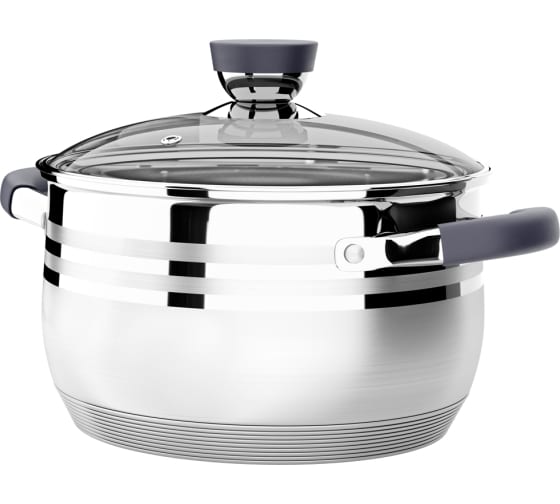 Благодаря высоким бортам кастрюля вмещает много продуктов, что удобно при приготовлении блюд для большой семьи или гостей.