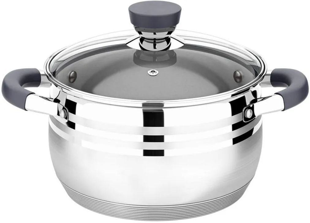 Толстое индукционное капсулированное дно подходит для всех типов плит и обеспечивает равномерный разогрев.
