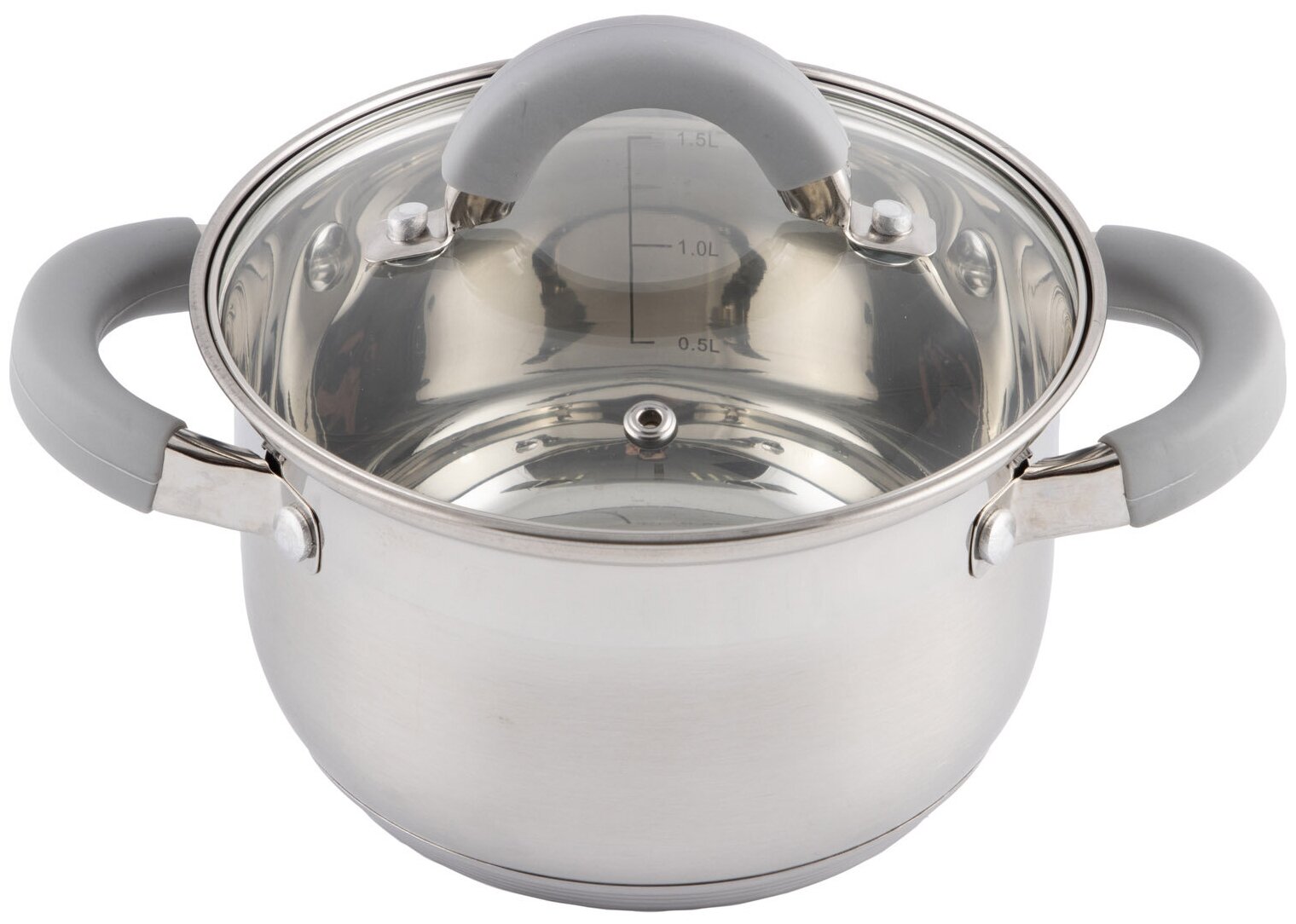 Кастрюля Felicità, объем 2 л, из нержавеющей стали с крышкой из жаропрочного стекла, размер 16*10 см