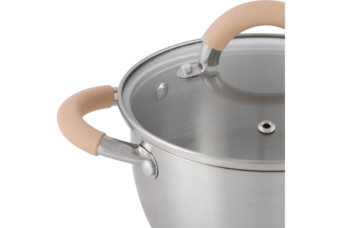 Кастрюля из нержавеющей стали с крышкой выполнена из нержавеющей стали, что обеспечивает надежность и продолжительный срок службы.