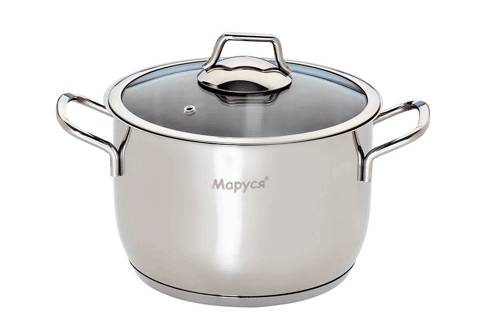 Кастрюля Маруся 85к со стеклянной крышкой 8.5л, нержавеющая сталь (цилинд.форма)