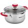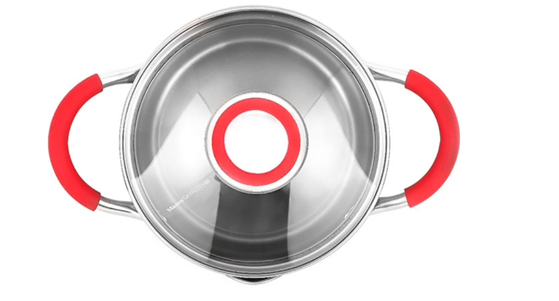 Крышка из термостойкого стекла с отверстием для пара и ободком из нержавеющей стали для предотвращения сколов.