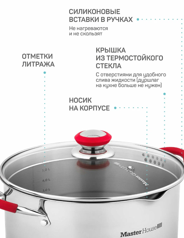 Капсулированное дно с алюминиевой вставкой обеспечивает быстрое нагревание и равномерное распределение тепла.