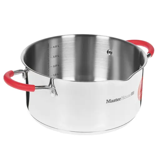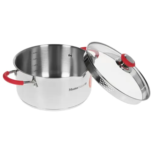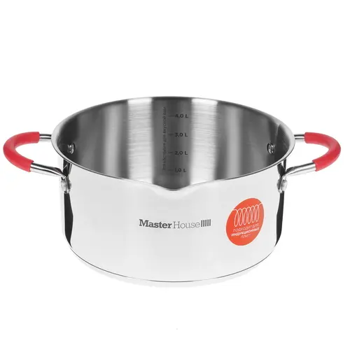 Посуда с капсулированным дном допускает готовку на простой или индукционной плите. Предусматривается наличие небольшого носика для аккуратного слива воды и двух металлических ручек с силиконовыми накладками. Внутренние стенки дополнены зеркальной полировкой.