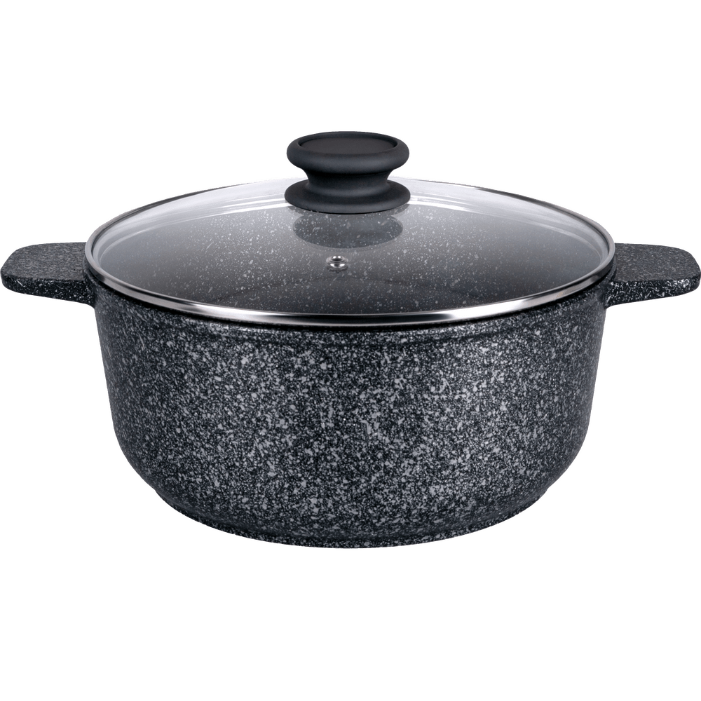 Пять слоев безопасного антипригарного покрытия, не меняет вкус и аромат еды. Кастрюля с эффектным мраморным покрытием и современной ручкой в универсальном сером цвете, будет отлично сочетаться с любой кухней.
