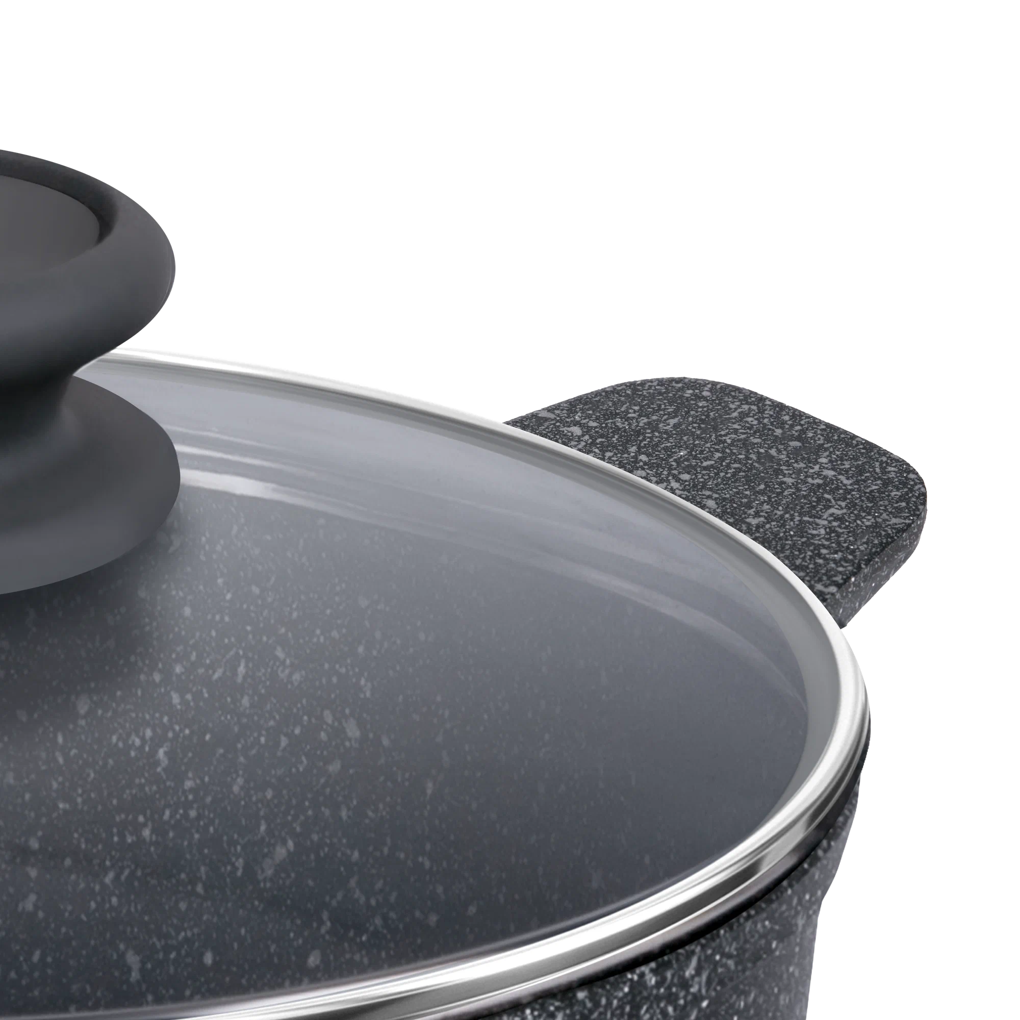 Эргономичный держатель крышки из термостойкого бакелита с покрытием soft-touch не скользит в руке и не нагревается в процессе приготовления.